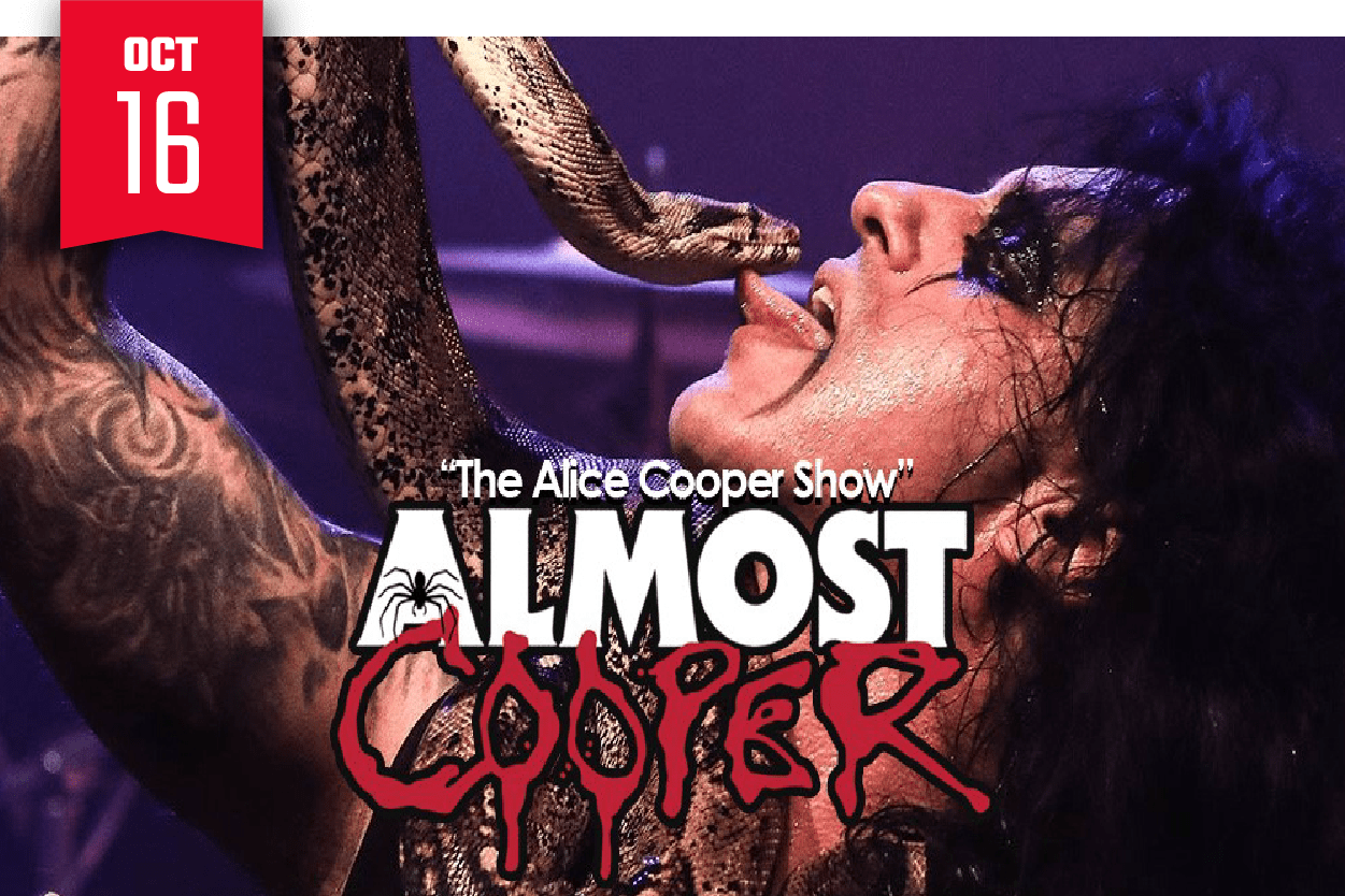 Almost Cooper is lead by World Famous Celebrity impersonator Bobby Jensen. Bobby has over 16 years of experience impersonating Alice Cooper and has performed with him live on stage for fundraisers in Las Vegas as well as the Alice Cooper Christmas Pudding in 2013. ALMOST COOPER is more than a Tribute. It is a journey into the Nightmare World of Alice Cooper! Almost Cooper is the only show in the World that brings you the complete Vaudeville Style Rock n’ Roll Horror show that Alice is famous for in a complete stage production loaded with special effects, lighting, props and great songs! FEATURING: Live Snakes! A Real Guillotine! A 12 Foot tall FrankenAlice monster Nightmare Nurses ( As Seen on stage with Alice) and everything else that made Alice Cooper “The Godfather Of Shock Rock”!