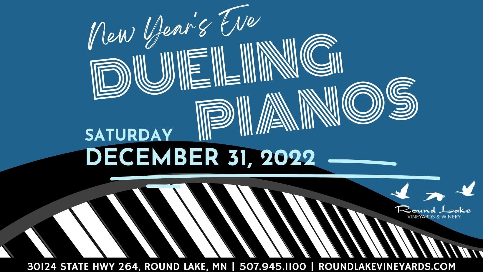 Ring in the New Year with Round Lake Vineyards & the Dueling Duo! The Dueling Duo is largely sot after event in the Midwest Area. Ticket include meal and entertainment. Cash bar available. Doors at 7 pm. Dinner is served at 8 pm.