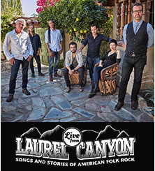 DATE June 25 TIME 7:30 PM WHERE Lauridsen Performing Arts Theatre EVENT Members only Presale ticket sales 2/13-2/19/2024 | Call for Tickets 712-332-7029 THE STORY | The Birth of a Rock & Roll Neighborhood Laurel Canyon is located in the Hollywood Hills of Los Angeles, CA. Laurel Canyon Boulevard connects northern LA suburbs in the San Fernando Valley to artsy West Hollywood and the now infamous Sunset Strip. The Canyon housed artists as early as the beginning of the 20th century as major motion-picture companies set up production around Los Angeles. The Canyon became a sort of de facto artist community as the entertainment and nightlife industry grew. Musicians especially enjoyed the rural feel and seclusion the canyon provided but also its proximity to the nightlife on Sunset Boulevard and beyond. Fast forward to 1965, when our story starts… Based on the success of California Dreamin’ The Mamas & The Papas all took up residence in the Canyon in 1965 which almost started a movement of artists, both aspiring and successful, to be a part of this community. Follow the twists and turns of the side roads off of Laurel Canyon Boulevard between 1965 and 1975 and you’d find some of the musicians who redefined American popular music and inspired the “LA sound” of the early 70s; artists like the Byrds, Buffalo Springfield, the Doors, Crosby, Stills, and Nash, Neil Young, James Taylor, Joni Mitchell, Carole King, Jackson Browne, Linda Ronstadt, America, and the Eagles.