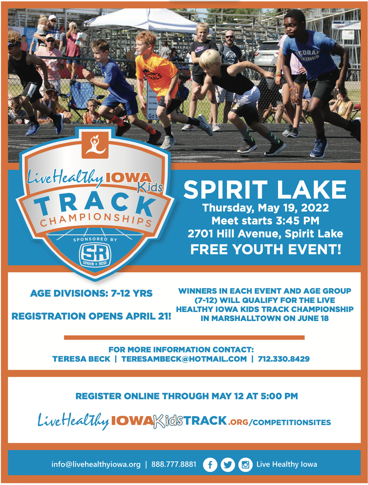Registration opens April 1! Ages 7-12 (as of 12/31/23) will compete in various track and field events for a chance to move on to the state event in Bondurant on June 17th!